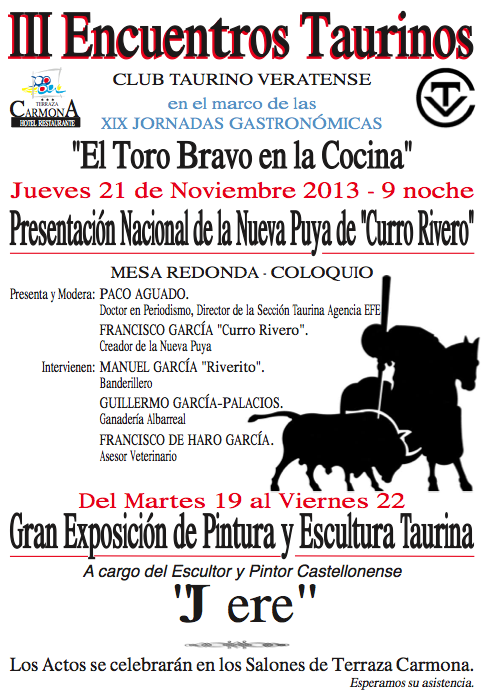 "El Toro Bravo en la Cocina"- III Encuentros Taurinos. Interesante.